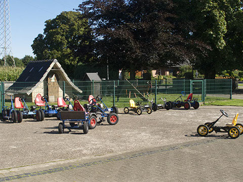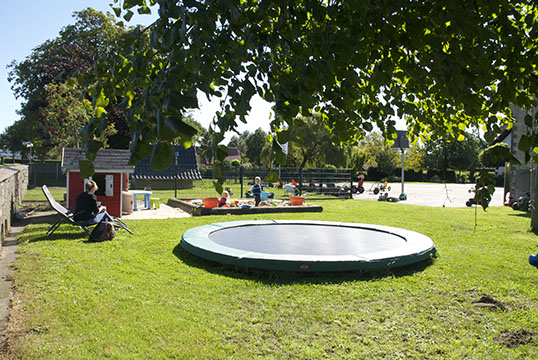 • Spielplatz mit Trampolin, Sandkasten, Schaukel, Kettcars